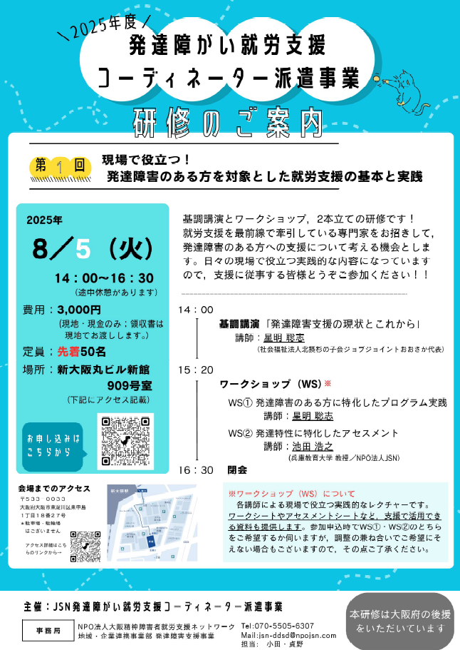 8/5(火) 研修のお知らせ! 『現場で役立つ!発達障害のある方を対象とした就労支援の基本と実践』