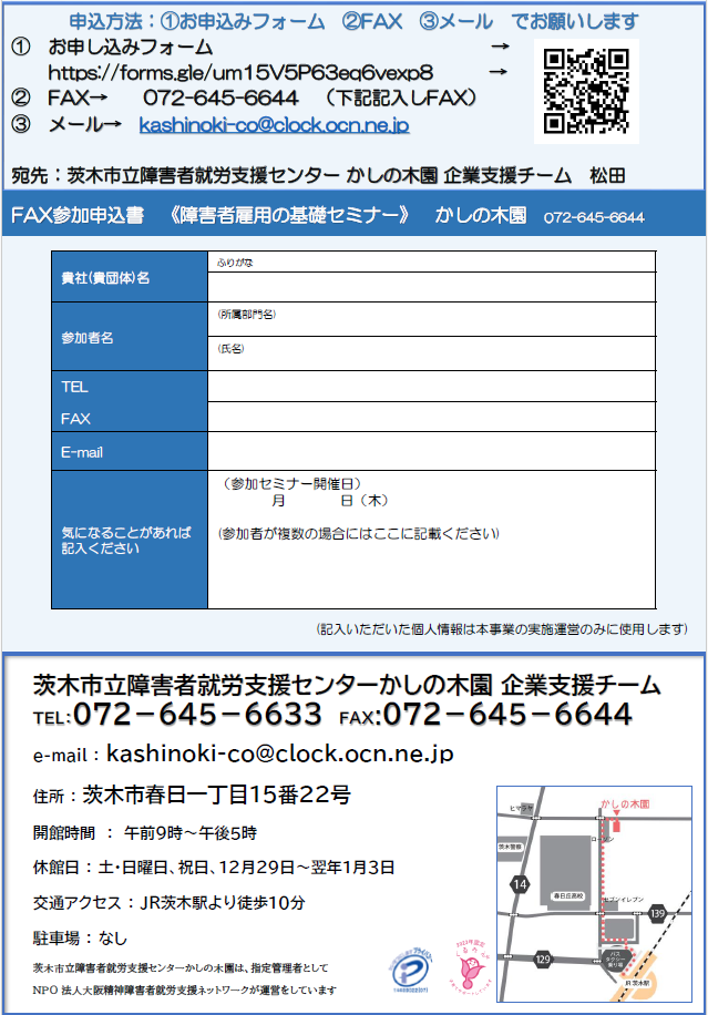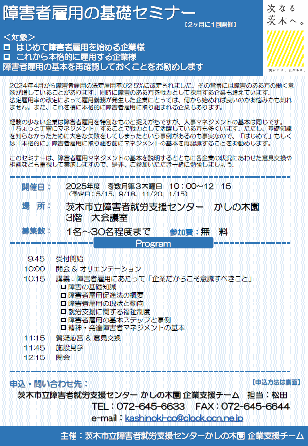 【かしの木園/11月20日(木)障害者雇用基礎セミナー開催のご案内】