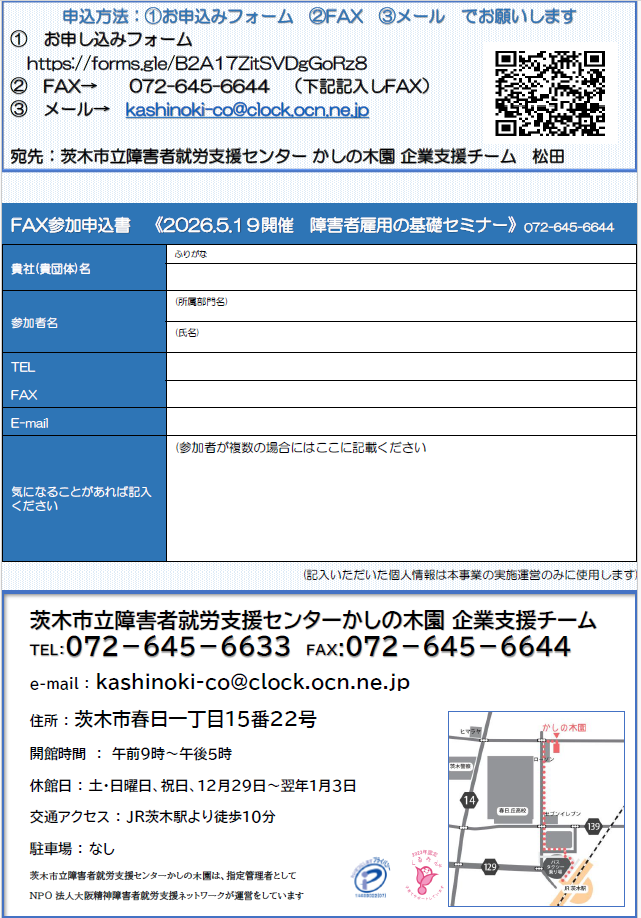 2026年5月19日 障害者雇用基礎セミナーのご案内